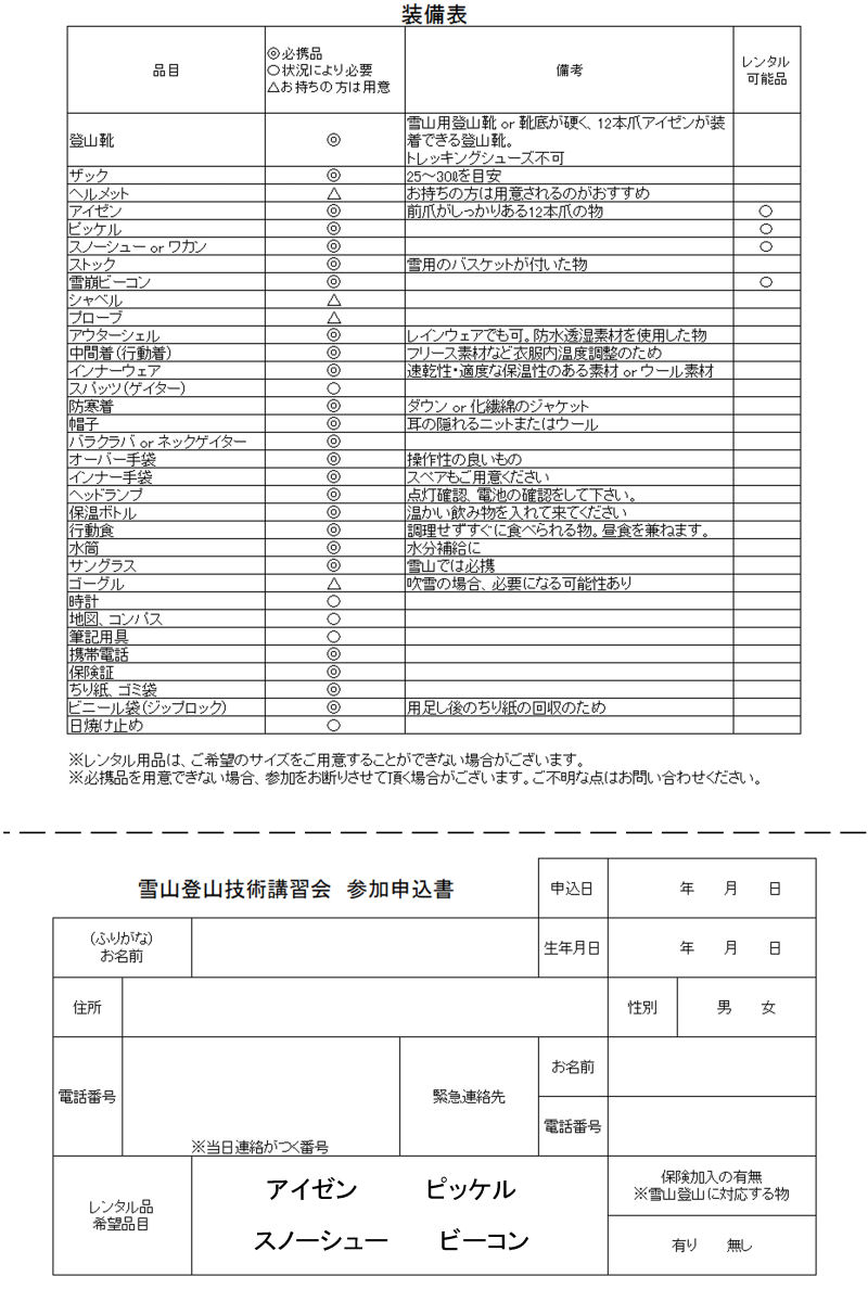 | 雪山登山技術講習会 |