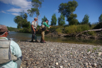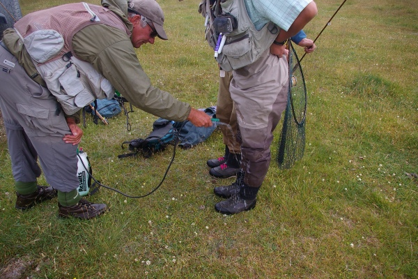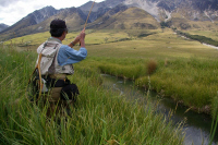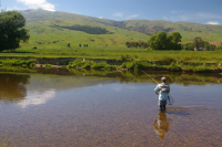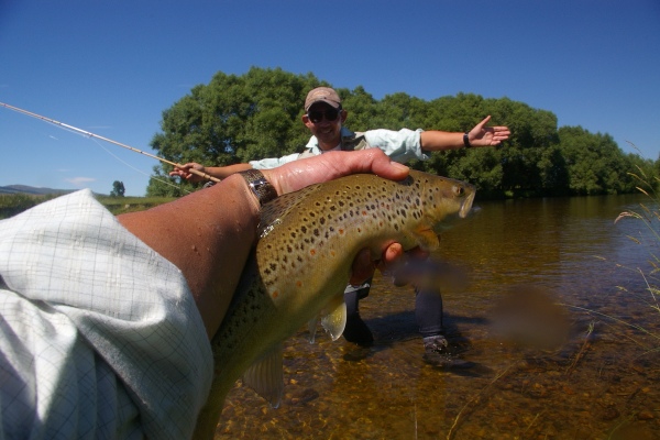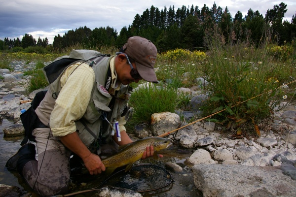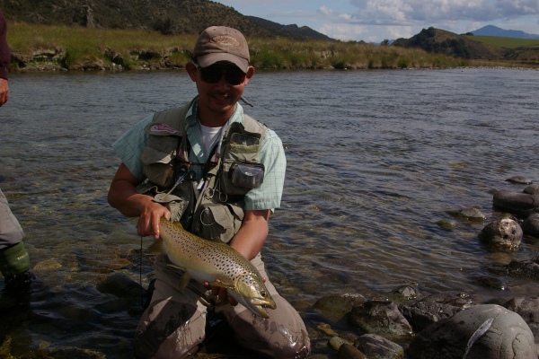 | ティアナウに夕方到着して7時頃からレンタカーで4-5分の川へ自分たちだけで夕まずめの釣り。9時を過ぎたらライズが始まり50cm前後のブラウンやレインボーがヒット。幸先が良過ぎるのでは・・・・ |