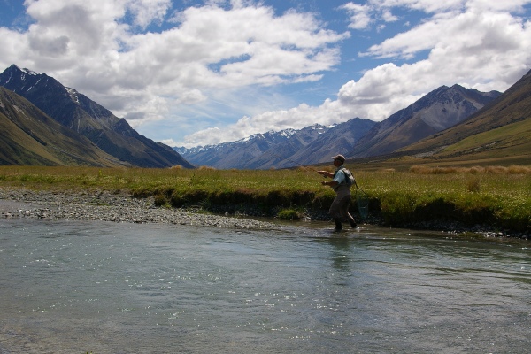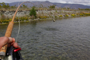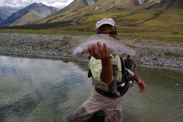 NZ、いや世界でも有数のでかいブラウンが住むオレッティーリバー。ただ今年は暖冬で雪の量が少なかったらしくやや減水気味。 |
