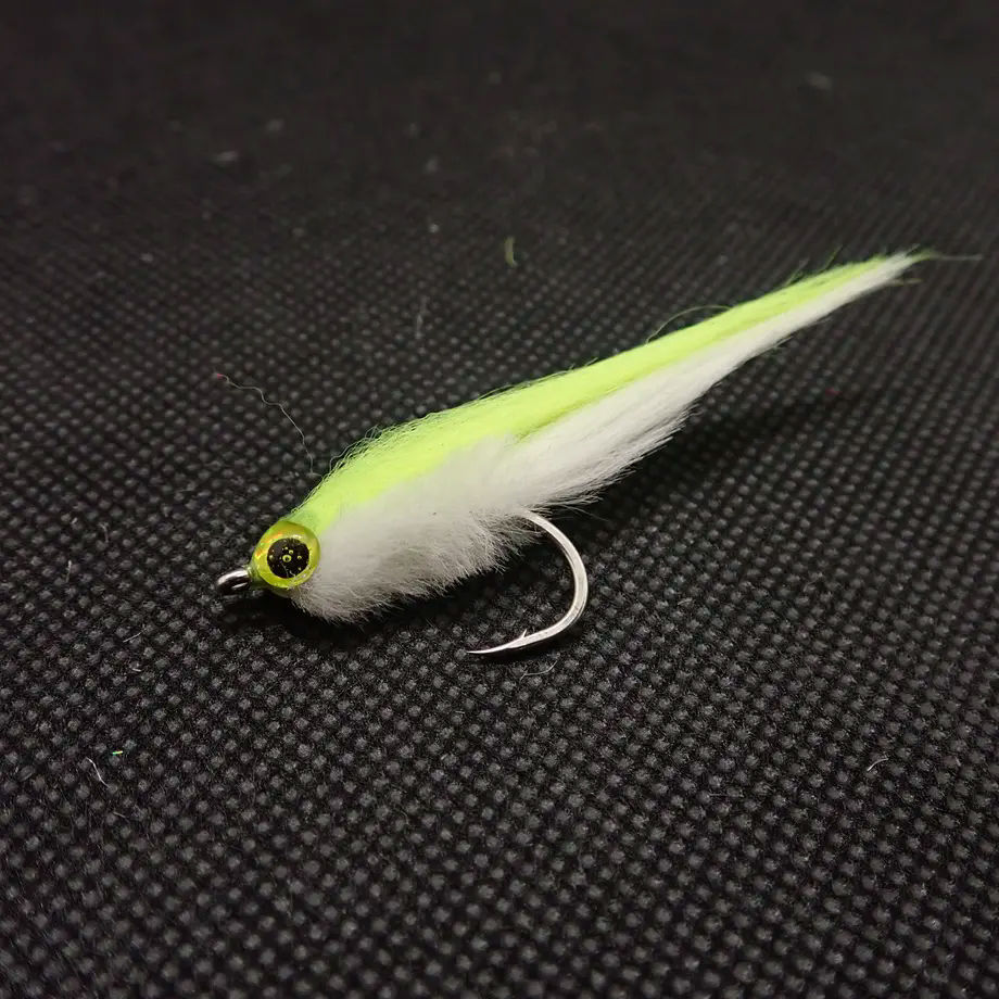 WatatsumiCustom Salt Water FliesM.Streamerエム・ストリーマー小型のベイトを捕食しているプレデター達を狙う際の鉄板フライ。シーバスはもちろん、ベイトに付いているクロダイ、南の島ではヒラアジ類にも実績多数。フックサイズ:#2全長:65㎜