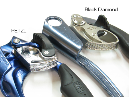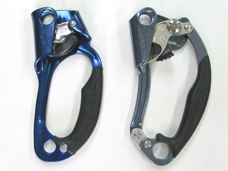 | | 左が大定番、PETZL・アッセンション。比べるとnフォースはちょっと大きめ。コンパクトさではアッセンションがおすすめです。nフォースのボトムのカラビナホールは大きく余裕をもってセットすることができます。 |