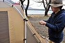 ●材質:アルミφ22mm、アルマイト加工 ●サイズ:φ22mmパイプ(3本継)、190cm ●セット内容:アルミポール190cm(×2)、自在付二又用ロープ(7m×2)、ジュラピンペグ(21cm×4)、収納ケース付 ●平均総重量:2.75kg