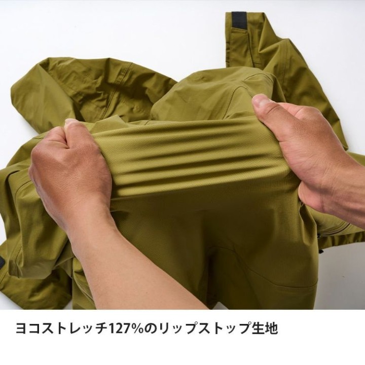 ●素材:表:20デニールストレッチナイロンリップストップ、裏:20デニールポリエステルニット、中間層:エバーブレス®メンブレン