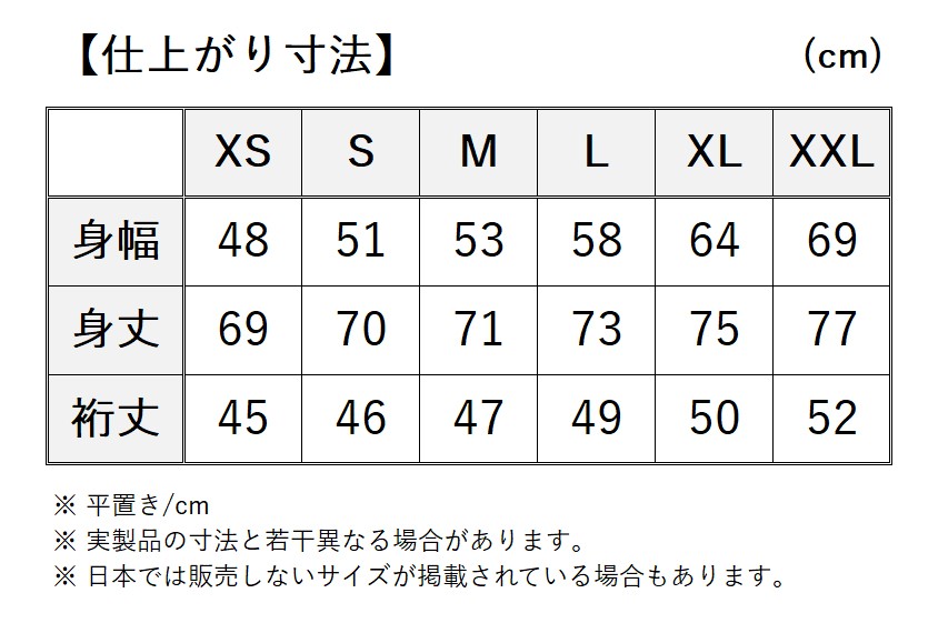 ●サイズ:XS〜XL (レギュラーフィット)