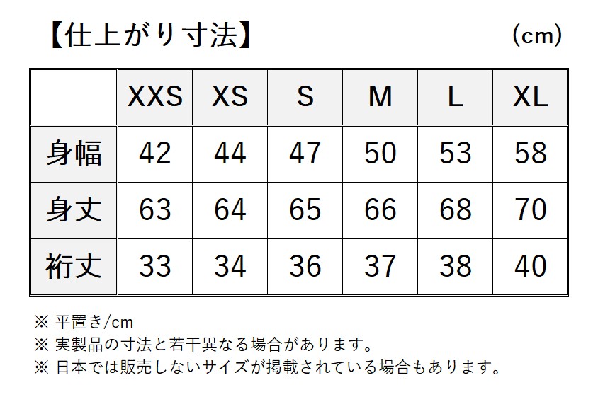 ●サイズ:XS〜XL (レギュラーフィット)