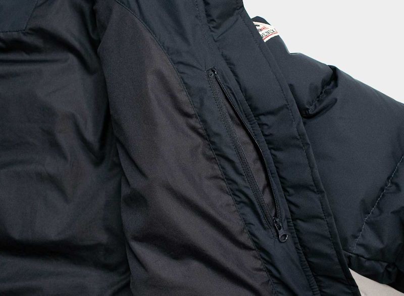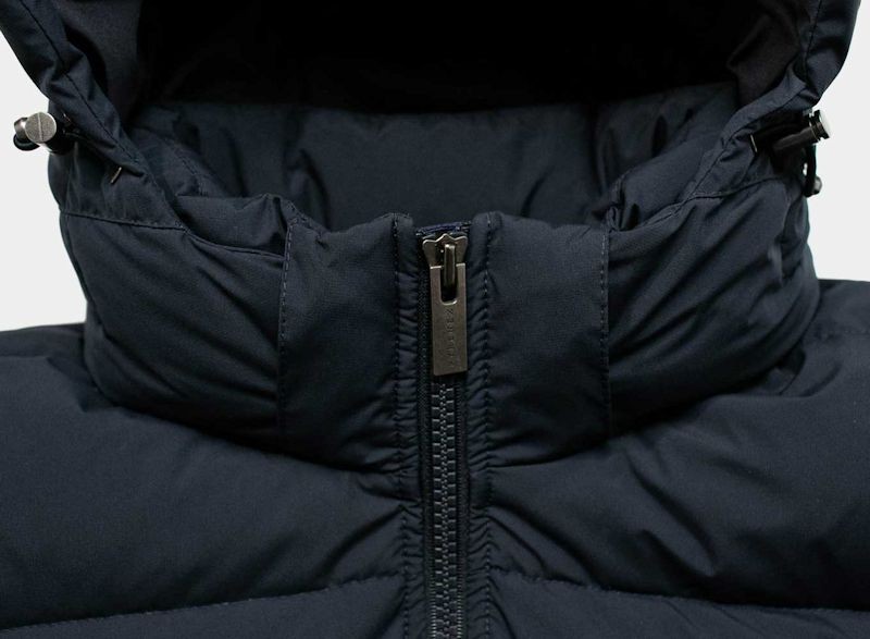 細部までダウンが詰められたフードにより、保温性を確保します。また、フードは取り外しが可能です。