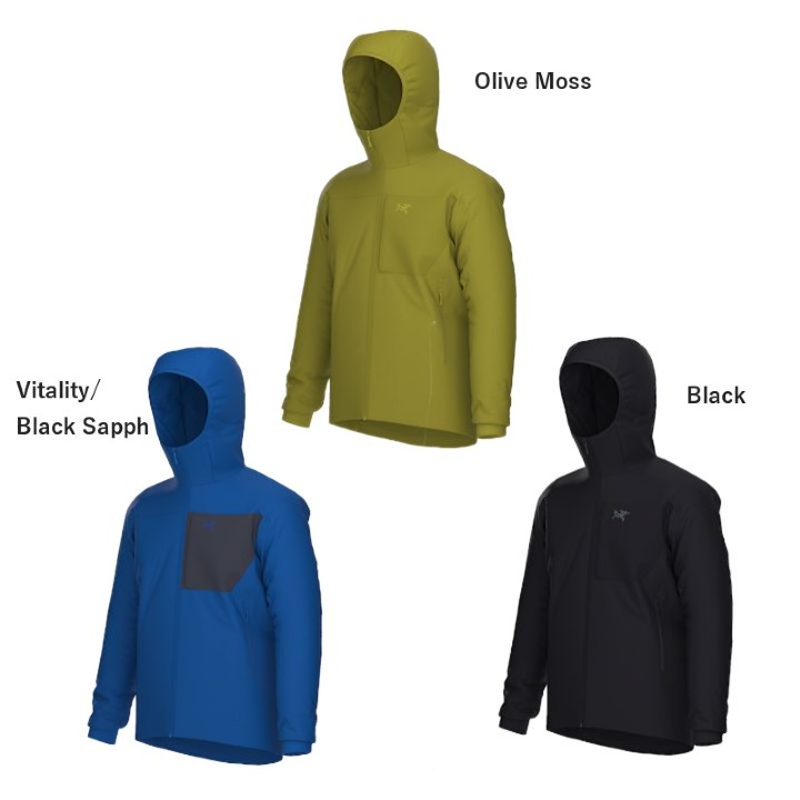 ・合成素材インサレーション:ポリエステル100% ・裏地:ナイロン100% ・ボディ:ナイロン88%、ポリウレタン12% ・合成素材インサレーション:ポリエステル100% ・PrimaLoft Gold Insulation Active Vent 60gsm ・20デニール リサイクルナイロン平織 42gsm シレー仕上げ ・リサイクル20デニールナイロン平織り緯糸ストレッチC0 DWR(耐久撥水加工)、58gsm ●重量:415g ●フィット:トリムフィット ●サイズ:S、M、L (CANADAサイズ) ●カラー:Black、Olive Moss、Vitality/Black Sapph |