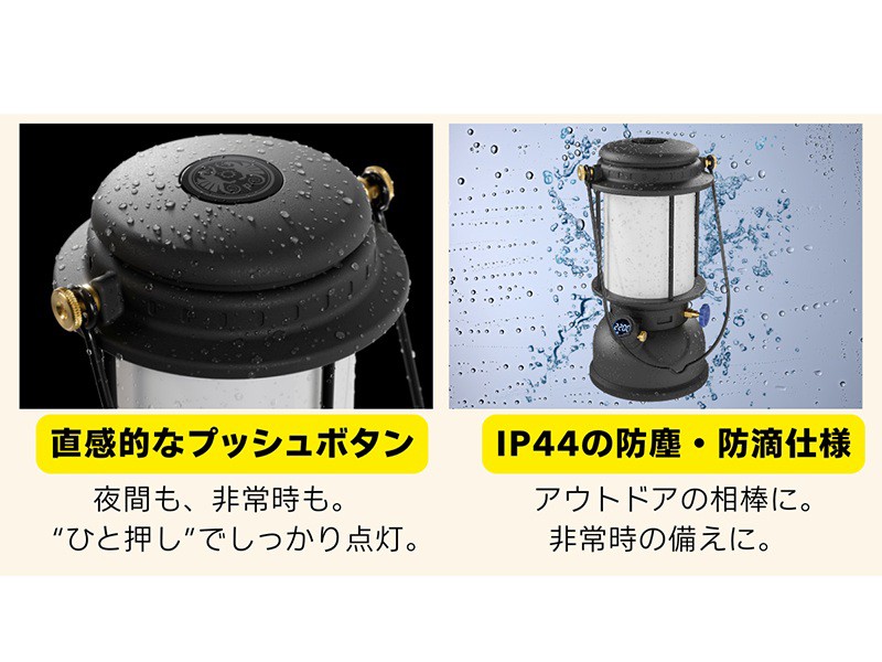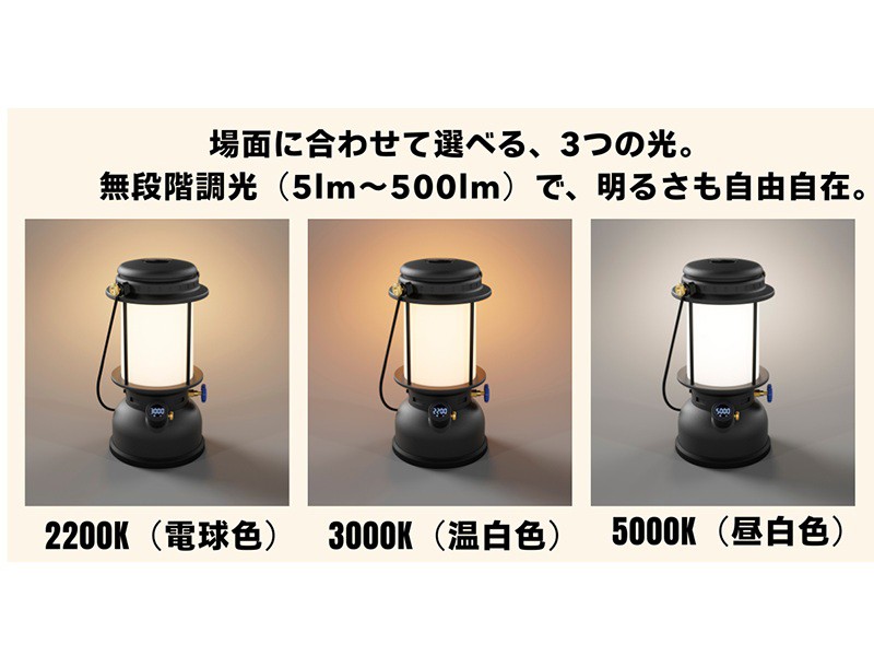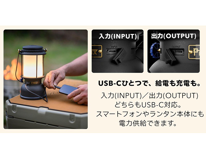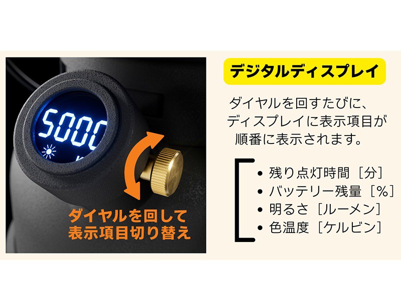 ●重量:約 1.2 kg ●材質:アルミニウム、真鍮、プラスチック、ガラス ●電池仕様:18650 リチウムイオンバッテリー × 4本 ※バッテリーは付属しておりません。 ●明るさ:最大 500 ルーメン(無段階調光) ●色温度 :2200K (電球色)/ 3000K(温白色) / 5000K(昼白色) ●点灯時間:5時間(5000K/500lm)〜160時間(2200K/5lm) ●入出力端子:USB Type‑C(入力 / 出力対応) ●防水・防塵性能:IP44(防滴仕様) |